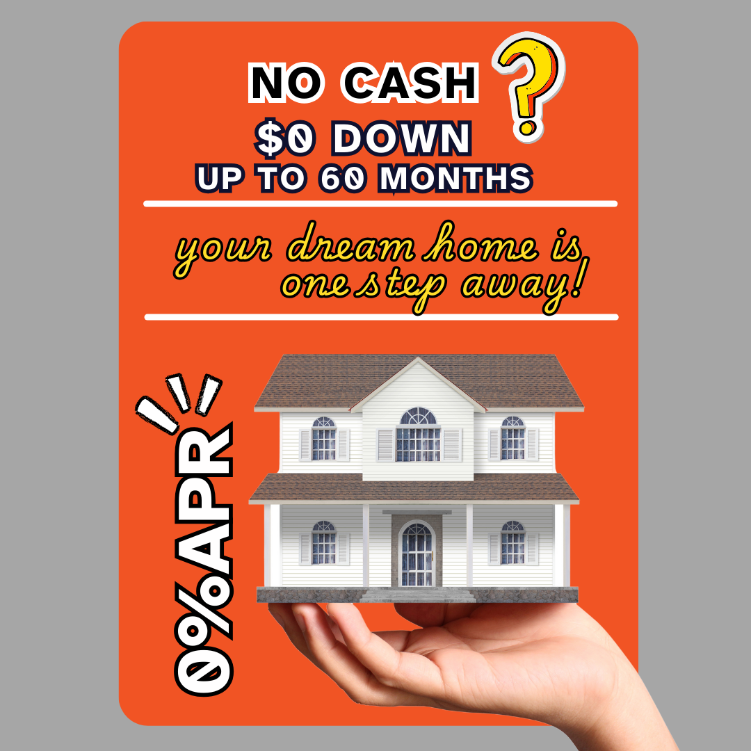 $0 down and 0% APR for up to 60 months means your perfect home is just a step away.
